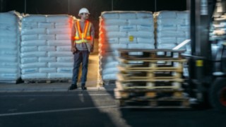 „Oft sind Fahrer und Fußgänger gerade dann besonders unachtsam, wenn vergleichsweise wenig Verkehr herrscht“, weiß Benjamin Reis, Manager Safety Sales bei Linde Material Handling. Brenzlig wird es auch im Außenbereich – vor allem, wenn es dämmert oder wenn Personen zwischen Lkw, Containern und blockweise nach oben gestapelten Waren hin und her laufen. Das Gleiche gilt für Hochregallager, Halleneingänge, Gebäudeecken sowie schlecht einsehbare Bereiche. „In solchen Fällen ist es wichtig, dass Fußgänger und Staplerfahrer rechtzeitig und zuverlässig voreinander gewarnt werden. Mit der Interaktiven Warnweste gelingt dies äußerst wirksam – und zwar lange, bevor sie ins Sichtfeld geraten“, schildert Safety-Experte Reis die Vorteile für die betriebliche Sicherheit.